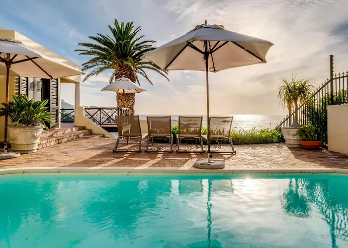 Camps Bay Terrace Lodge van 122 m^2 ligt op 16 minuten wandelafstand van Camps Bay Beach en biedt een buitenzwembad. Het appartement heeft een patio dat op de zee uitkijkt van een zwembad is voorzien.
